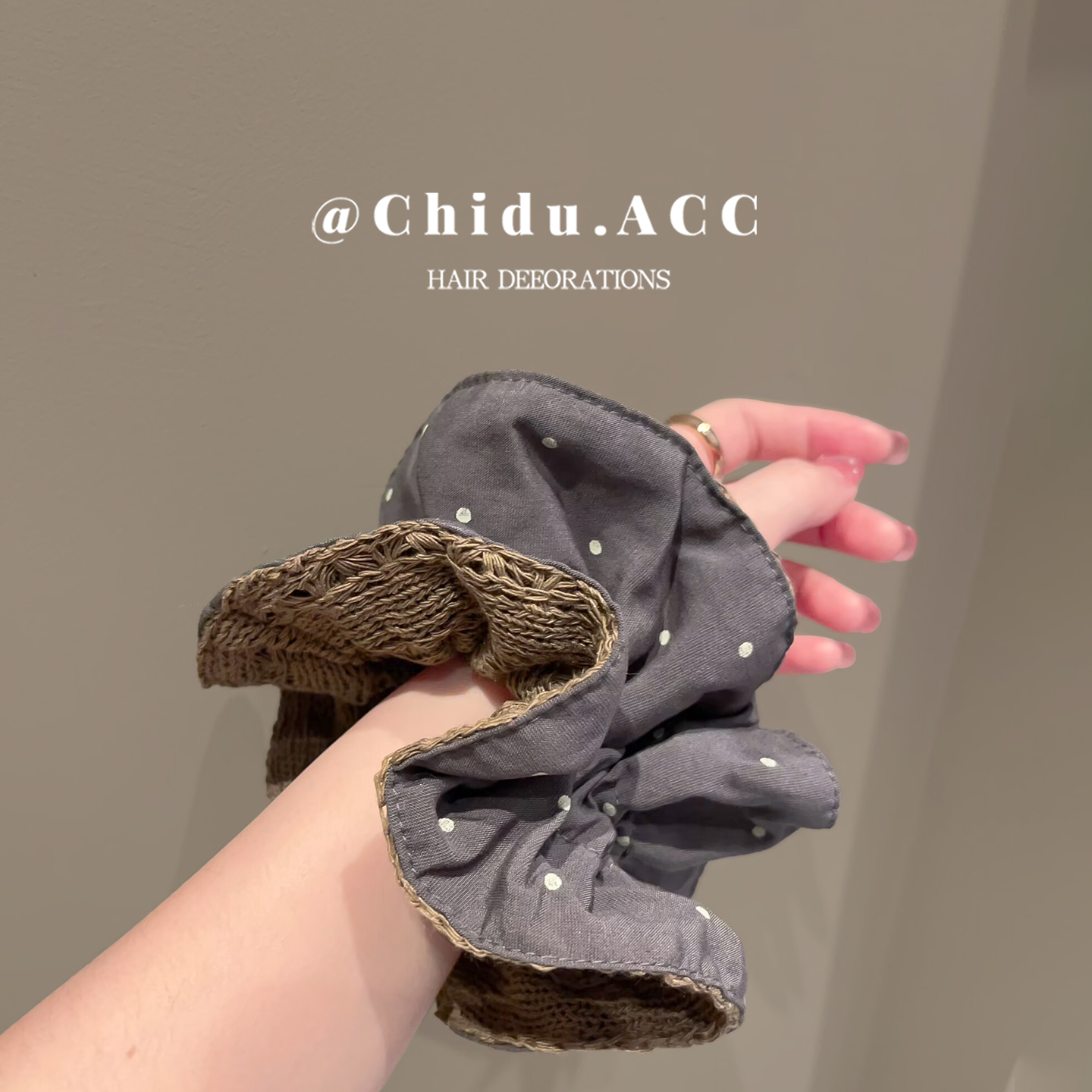 韩国新款 波点布艺小蛮腰肠圈发饰头饰 针织拼接双层大肠发圈