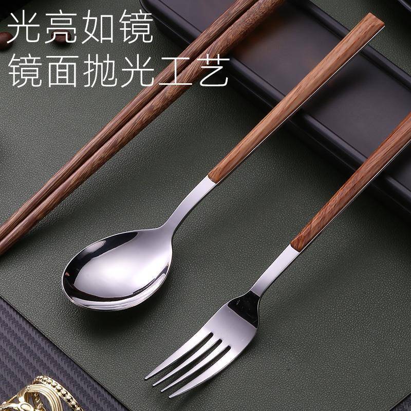德国品质不锈钢筷子勺子套装 便携餐具盒儿童小学生上学专用收纳盒