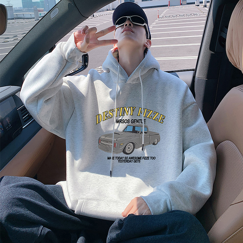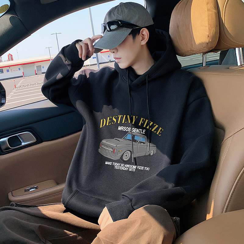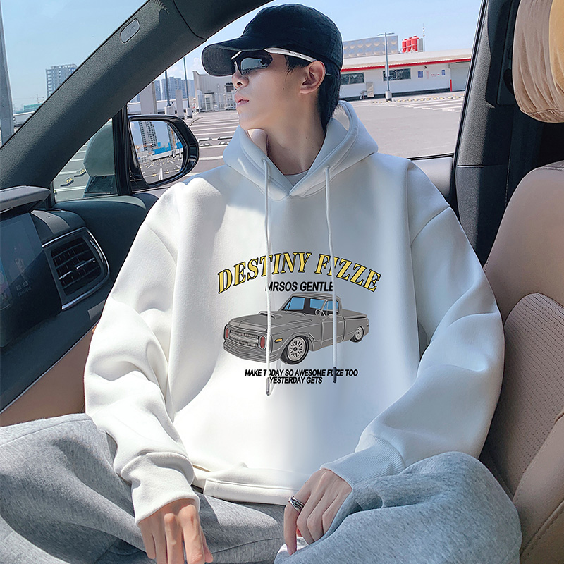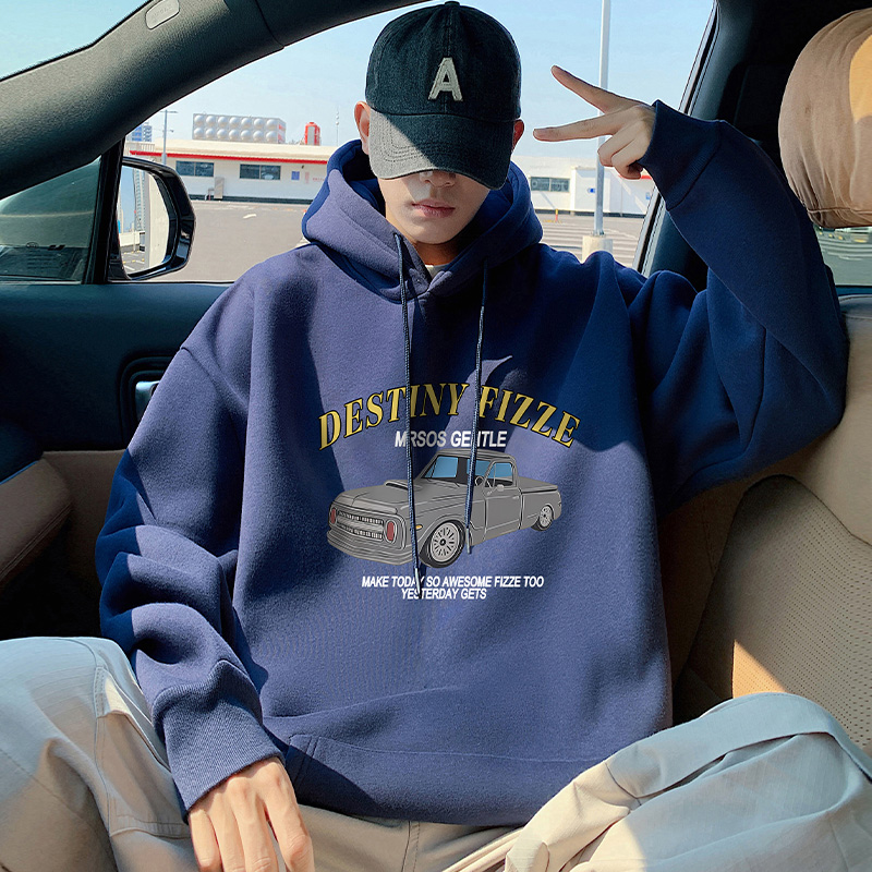 高街印花外套潮牌宽松衣服情侣连帽衫 卫衣男生春秋季 大码 重磅美式