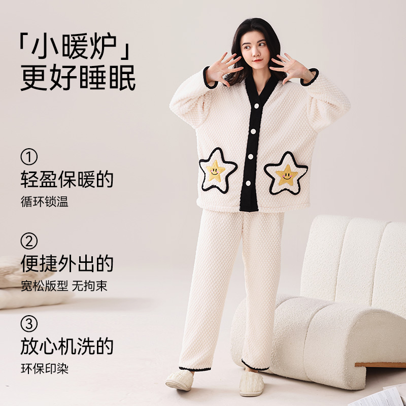 海岛绒抗静电保暖多巴胺宽松睡衣套装 三福家居服女2025年冬季 新款