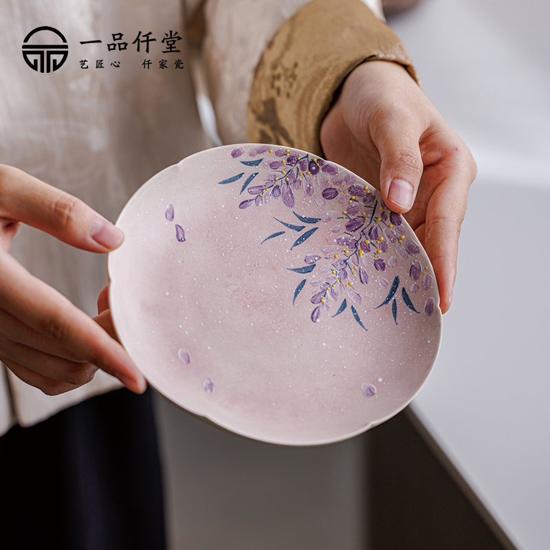手绘紫藤花高颜值浓缩咖啡杯碟三件套高级感女生下午茶拉花咖啡杯