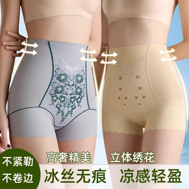 女士塑形身美体内裤 大码 冰丝绣花高腰收腹无痕透气薄款 美嘉挺夏季
