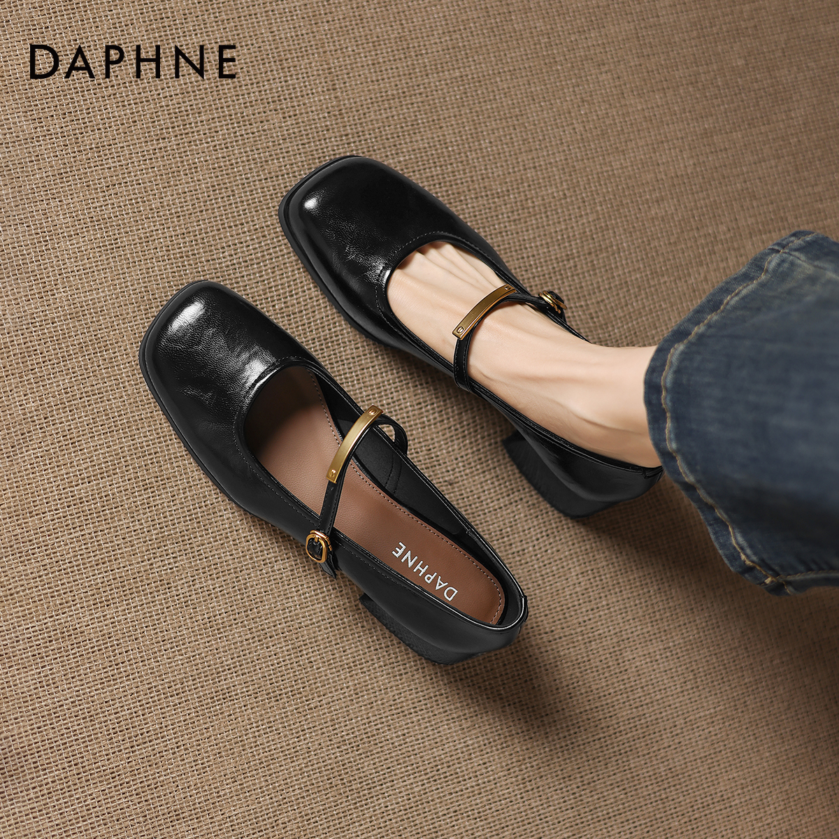 粗跟通勤小皮鞋 达芙妮黑色单鞋 玛丽珍女鞋 夏浅口法式 秋 女2025新款