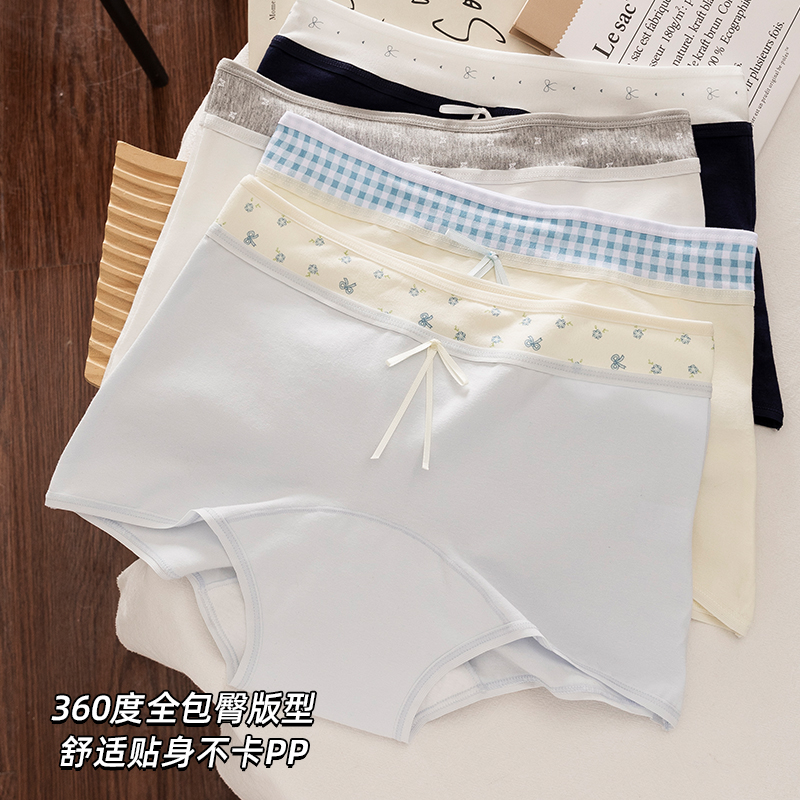 女士中腰纯棉抑菌透气运动少女四角短裤 平角内裤 氧气多巴胺