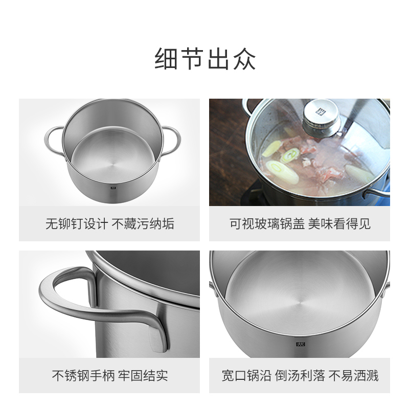 双立人不锈钢汤锅家用煲汤煮粥电磁炉燃气通用双耳锅煮锅 自营