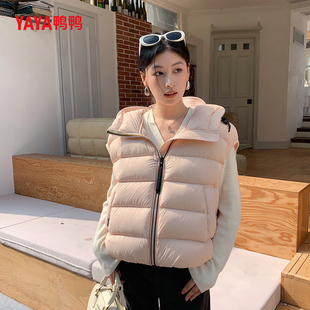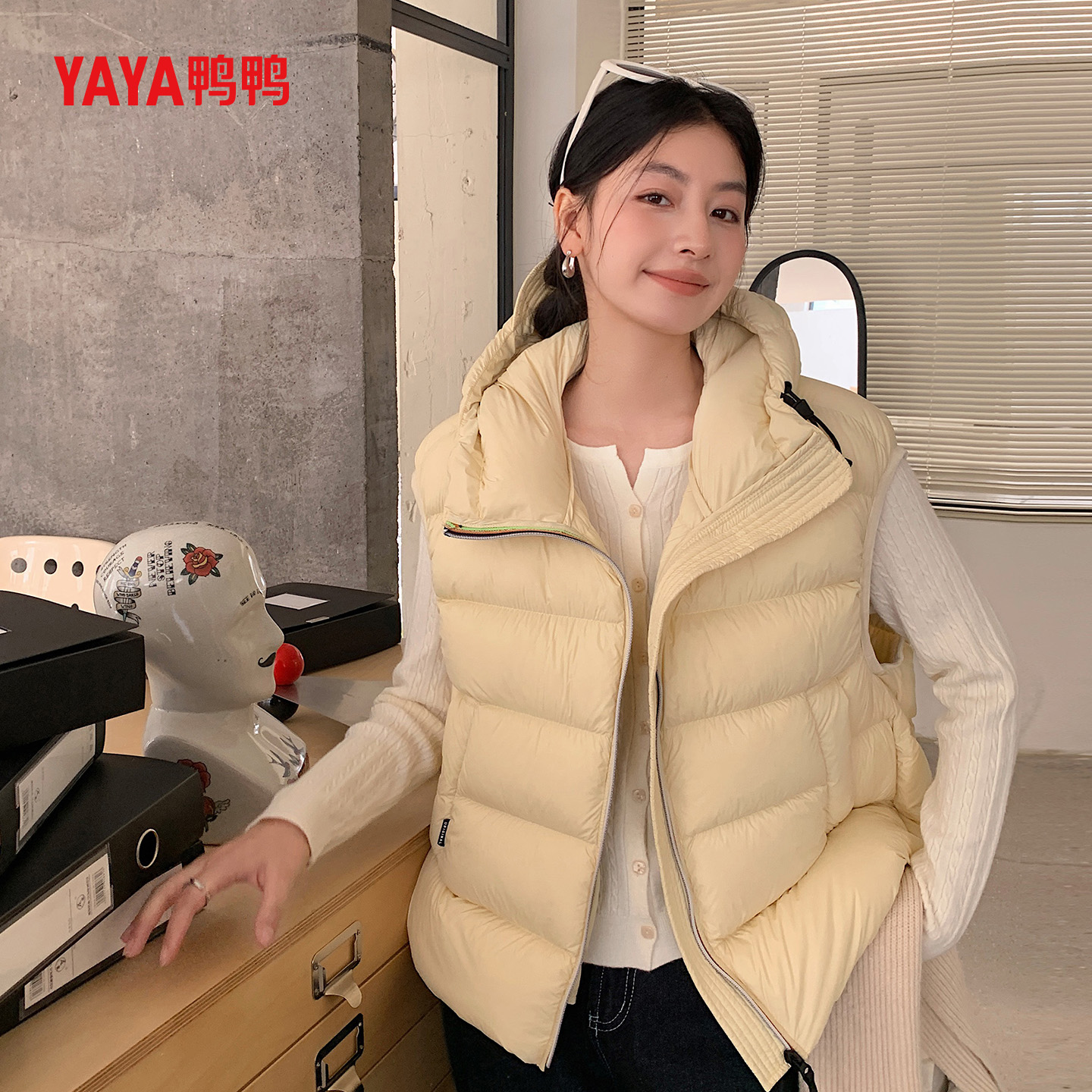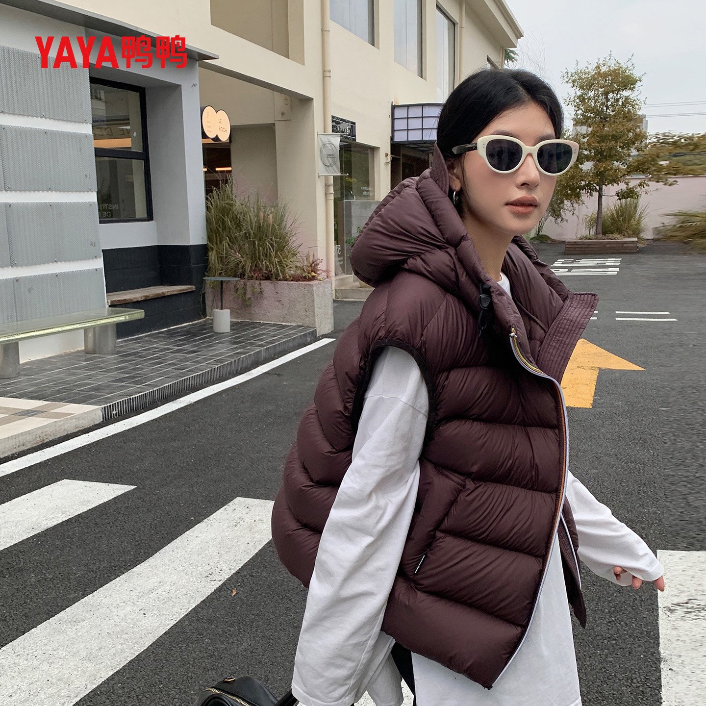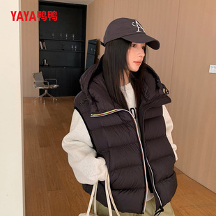 YAYA鸭鸭2025女士休闲风秋冬无袖 常规休闲纯色连帽马甲羽绒服 韩版