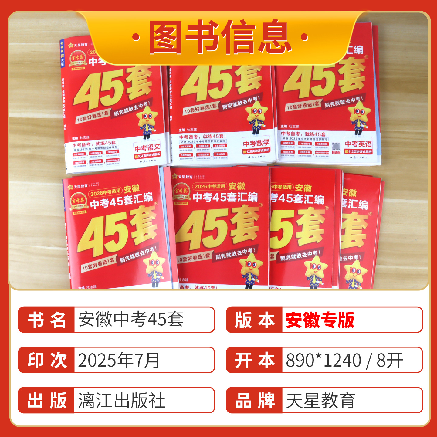 2026版 金考卷安徽中考45套汇编试卷总复习初中天星教育语文数学英语物理化学历史道德与法治生物真题模拟卷45套初中模拟卷优秀模拟