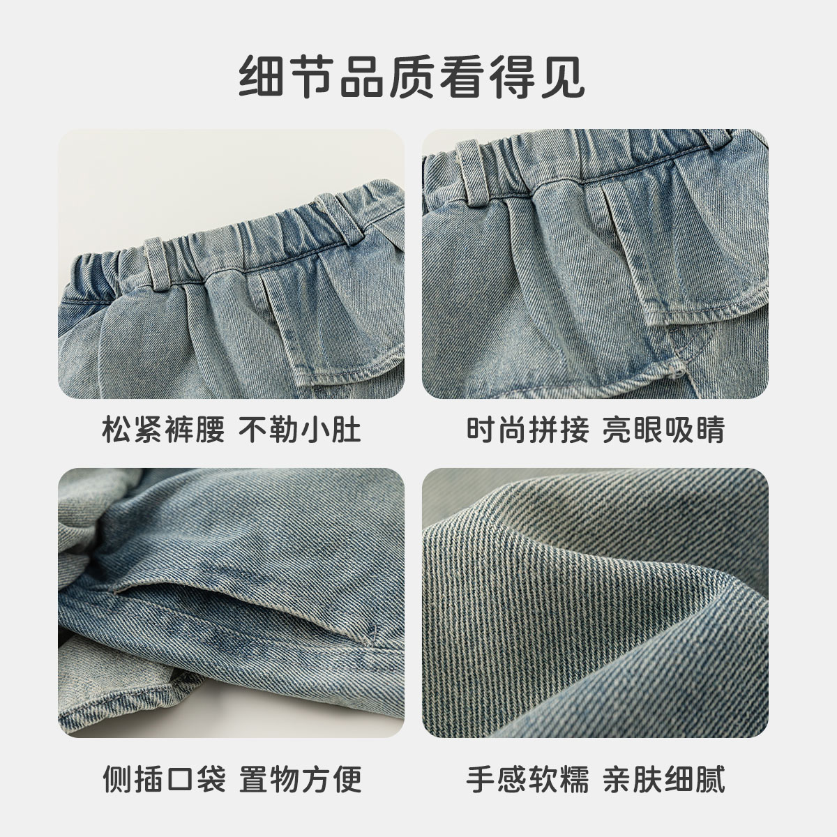 女童裤 儿童裤 子2025秋冬新款 牛仔裤 子 中大童直筒阔腿裤 植木童装