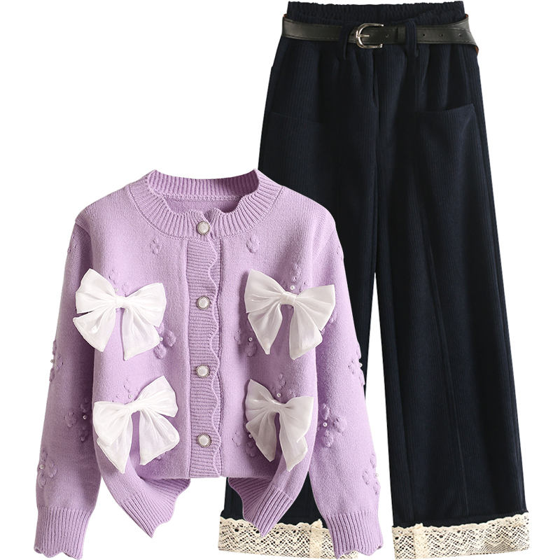 秋冬季 两件套儿童一整套秋装 新款 毛衣阔腿裤 洋气针织开衫 女童套装