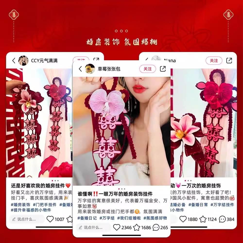婚房布置结婚门楣横彩拉花新房客厅卧室装 饰喜字挂件婚庆男方女方