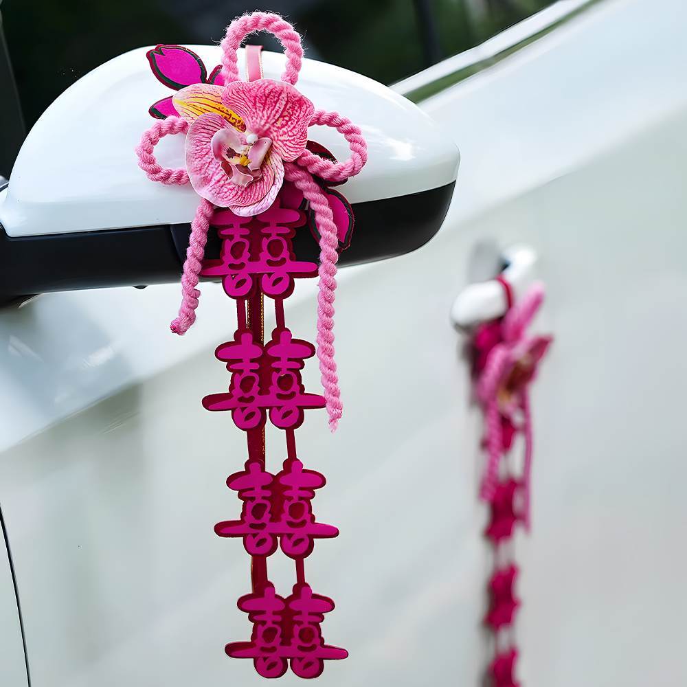 婚车拉花结婚装 饰接亲车队大号手汽车红丝带副车彩带婚礼用品大全