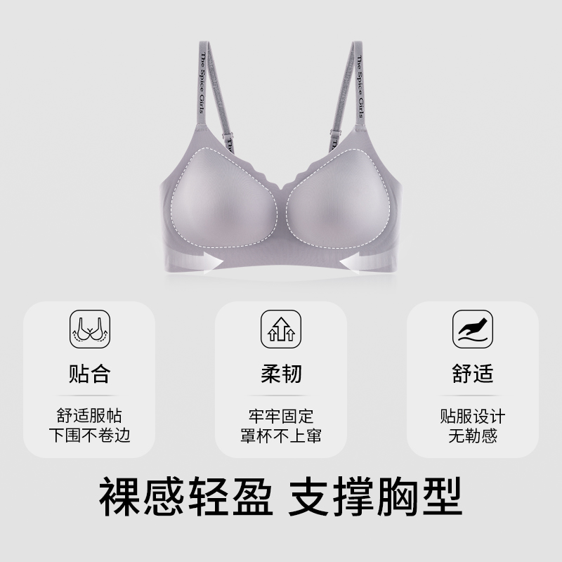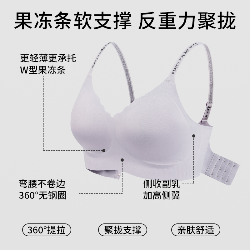 Bragood内衣女小胸聚拢光面无痕上托无钢圈收副乳调整型文胸
