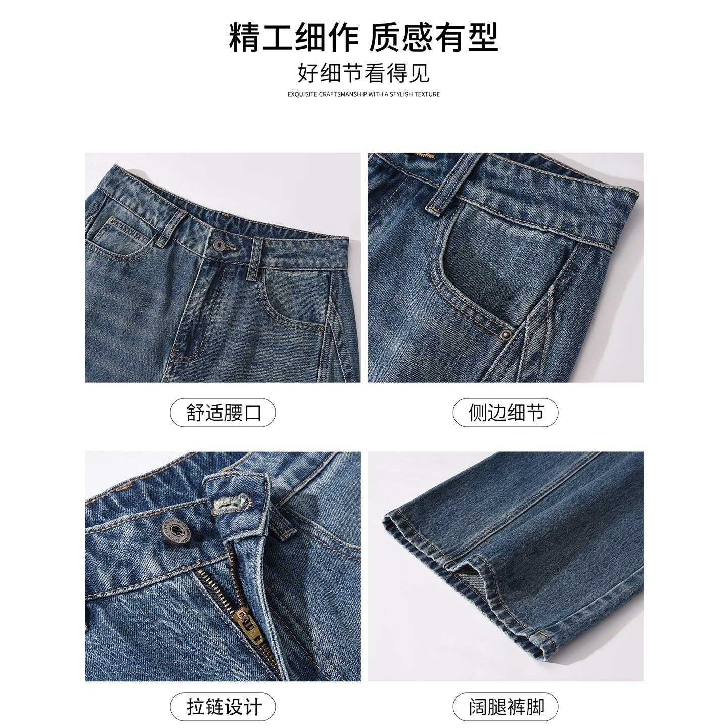 复古高腰宽松显瘦垂感直筒拖地裤 阔腿牛仔裤 秋款 爆款 子 女2025新款