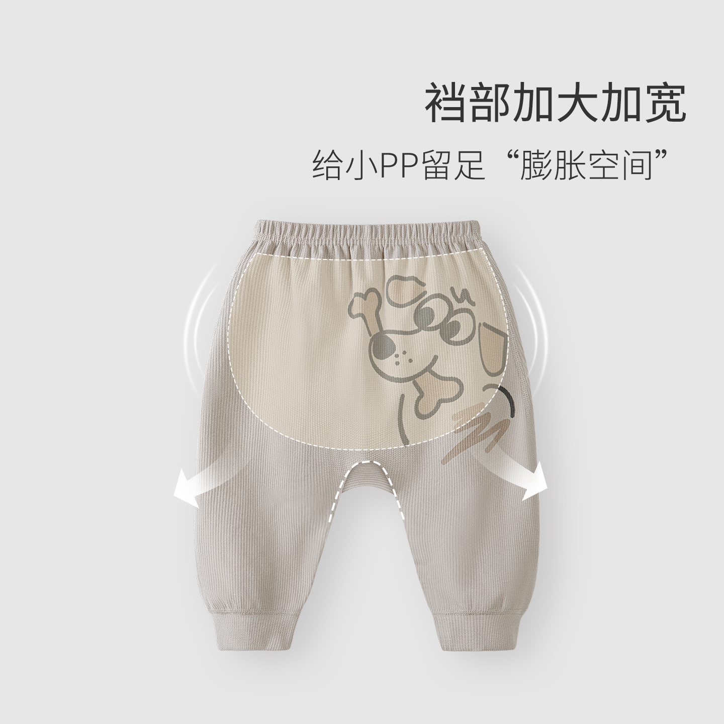 男女小童卡通束脚长裤 华夫格外出婴幼儿休闲大pp裤 子春秋款 宝宝裤