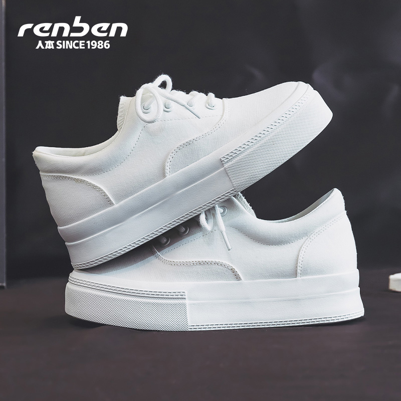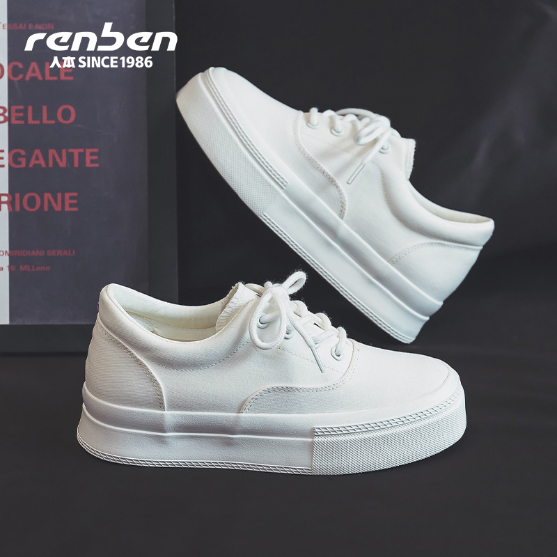 内增高百搭休闲透气学生小白鞋 人本厚底帆布鞋 新款 2025春秋季 女款