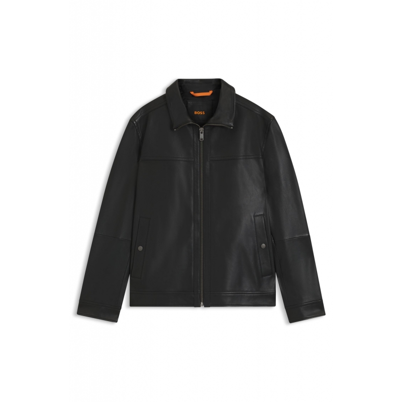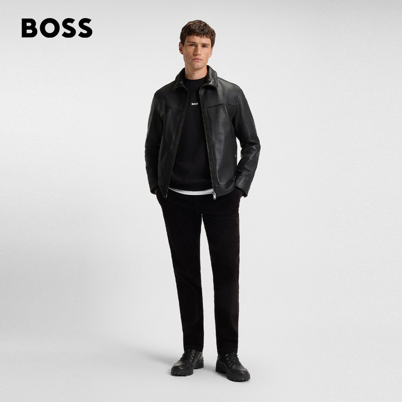 男士 25年冬季 新款 式 BOSS博斯 皮革衬衫 皮衣夹克 羊皮革