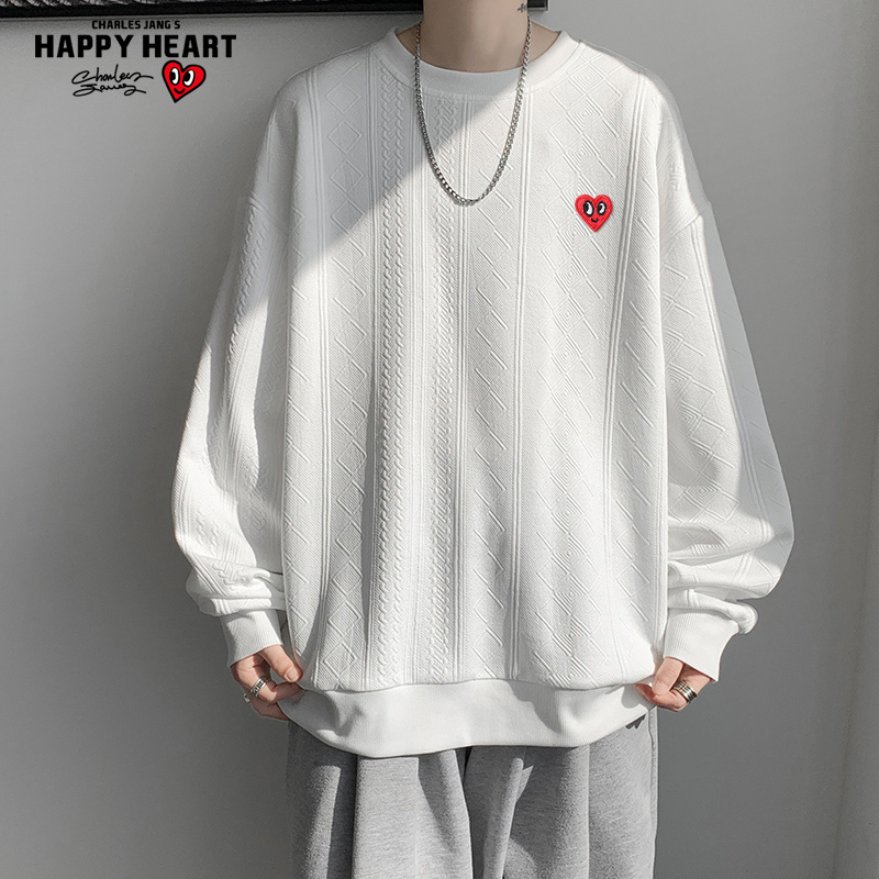 查尔斯桃心纯色cleanfit卫衣男圆领春秋季 上衣 内搭肌理感潮牌新款