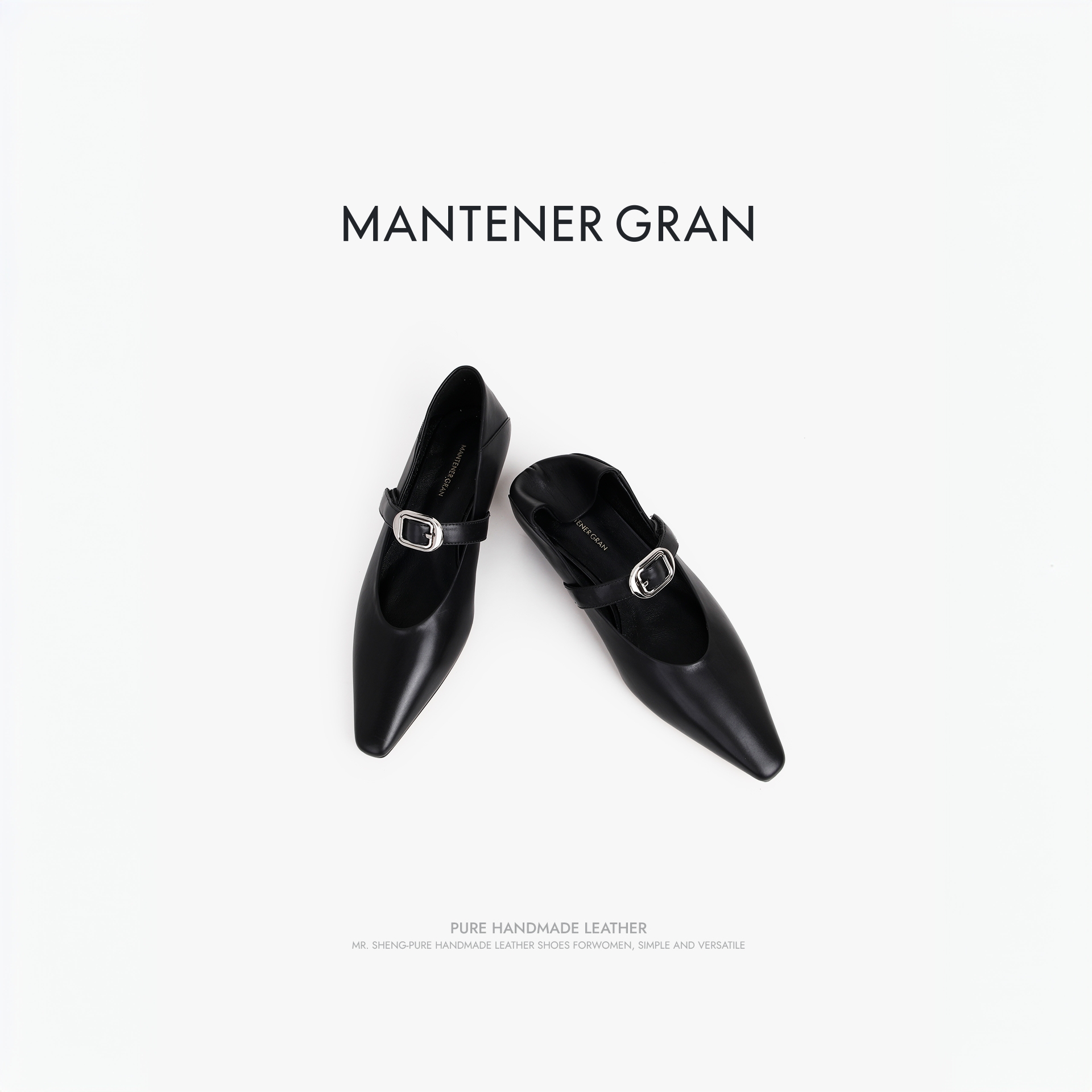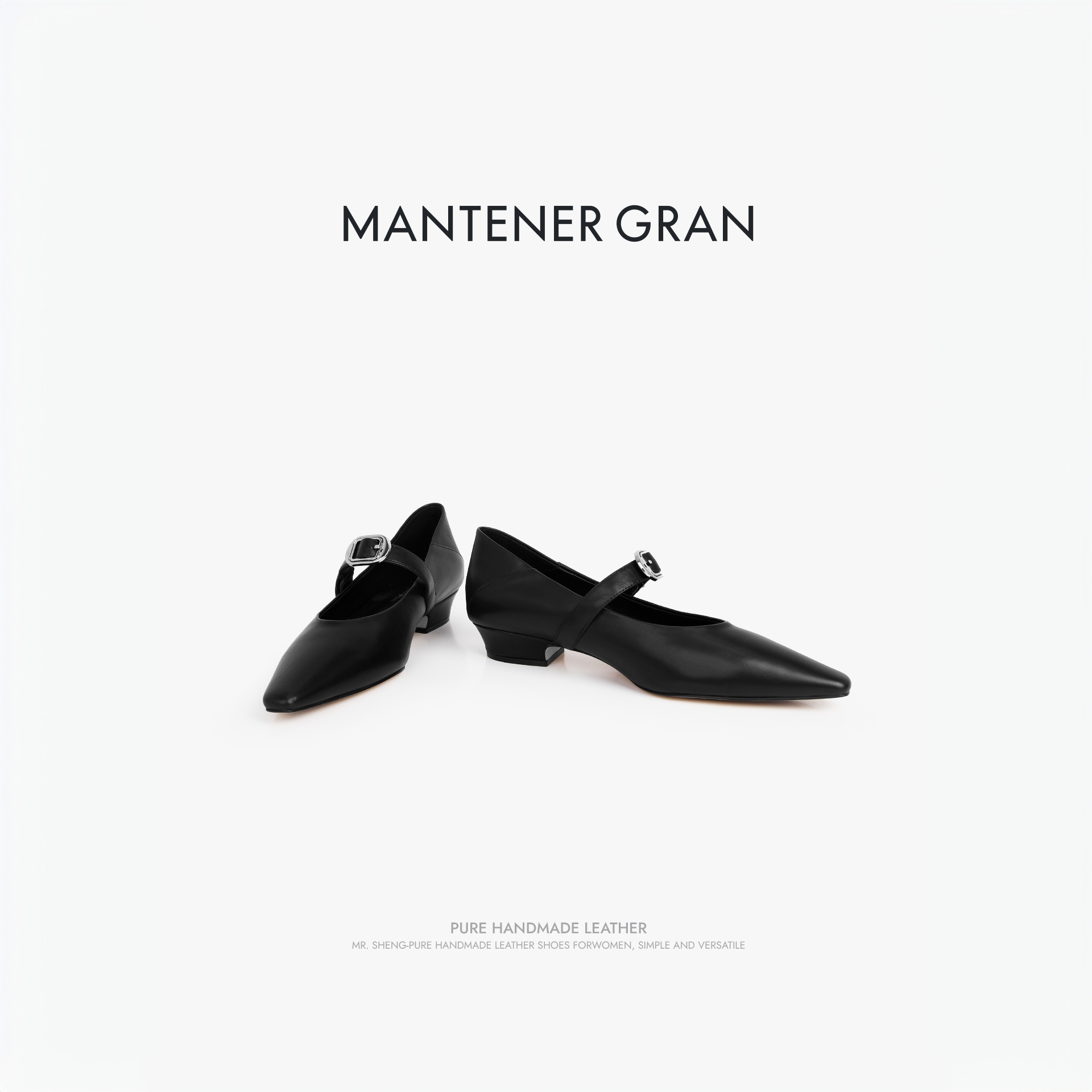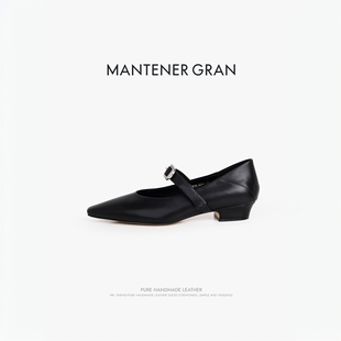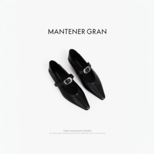 MG女鞋 小跟鞋 女一字魔术贴尖头单鞋 MantenerGran浅口玛丽珍鞋