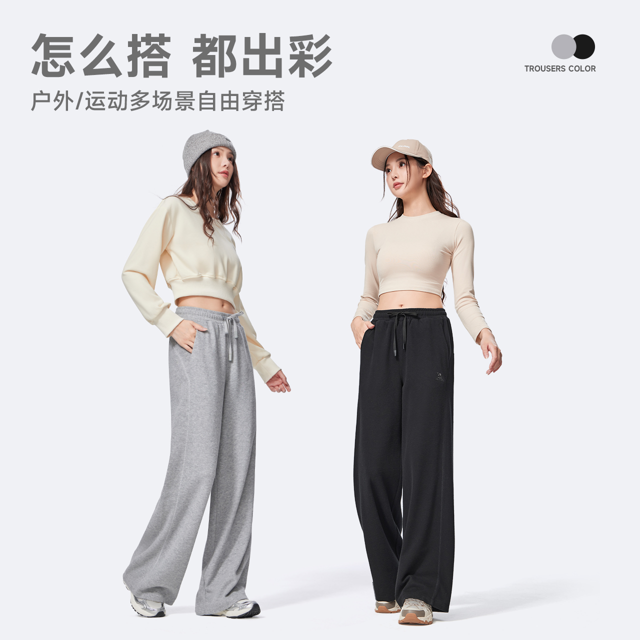 双11预售 子秋季 李宁卫裤 休闲黑色裤 加绒直筒运动长裤 女新款
