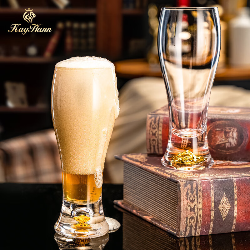 金箔啤酒杯家用玻璃高档大容量主人杯水晶个人专用茶杯饮料果汁杯