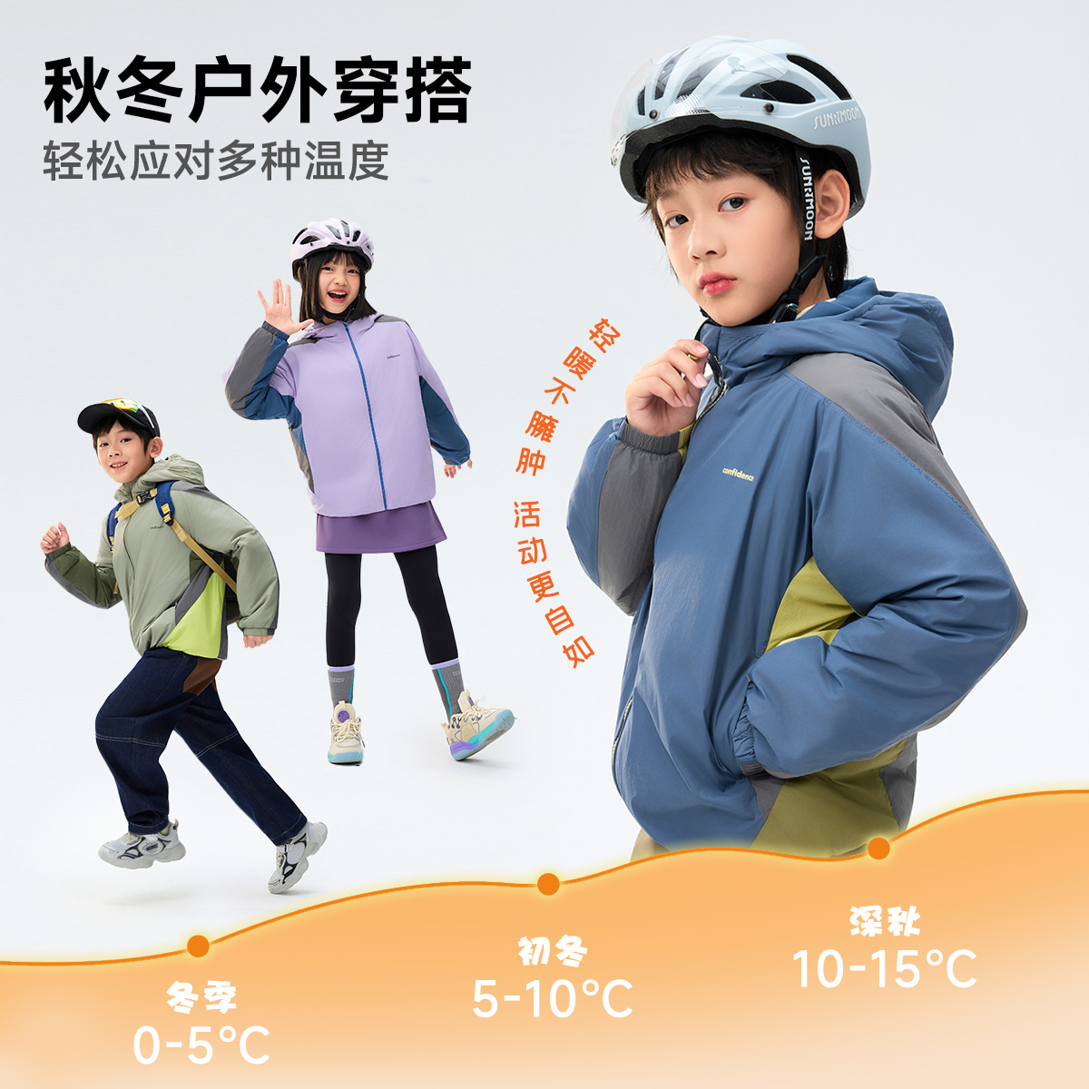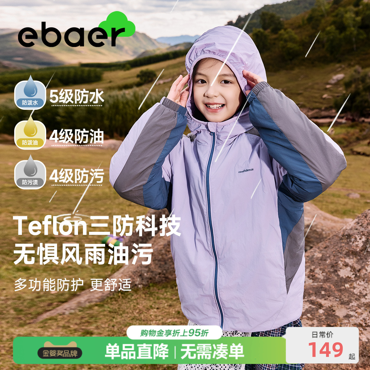 ebaer儿童软壳轻薄棉服2025秋冬新款 男女童三防保暖连帽外套棉衣