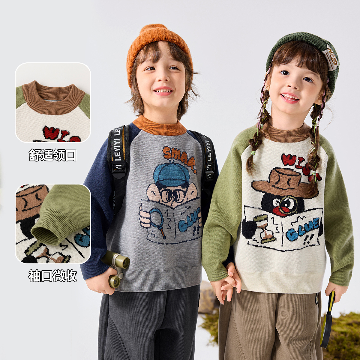 秋冬针织毛衫 女装 乐町撞色线开衫 宽松毛衣外套 费尔岛系列
