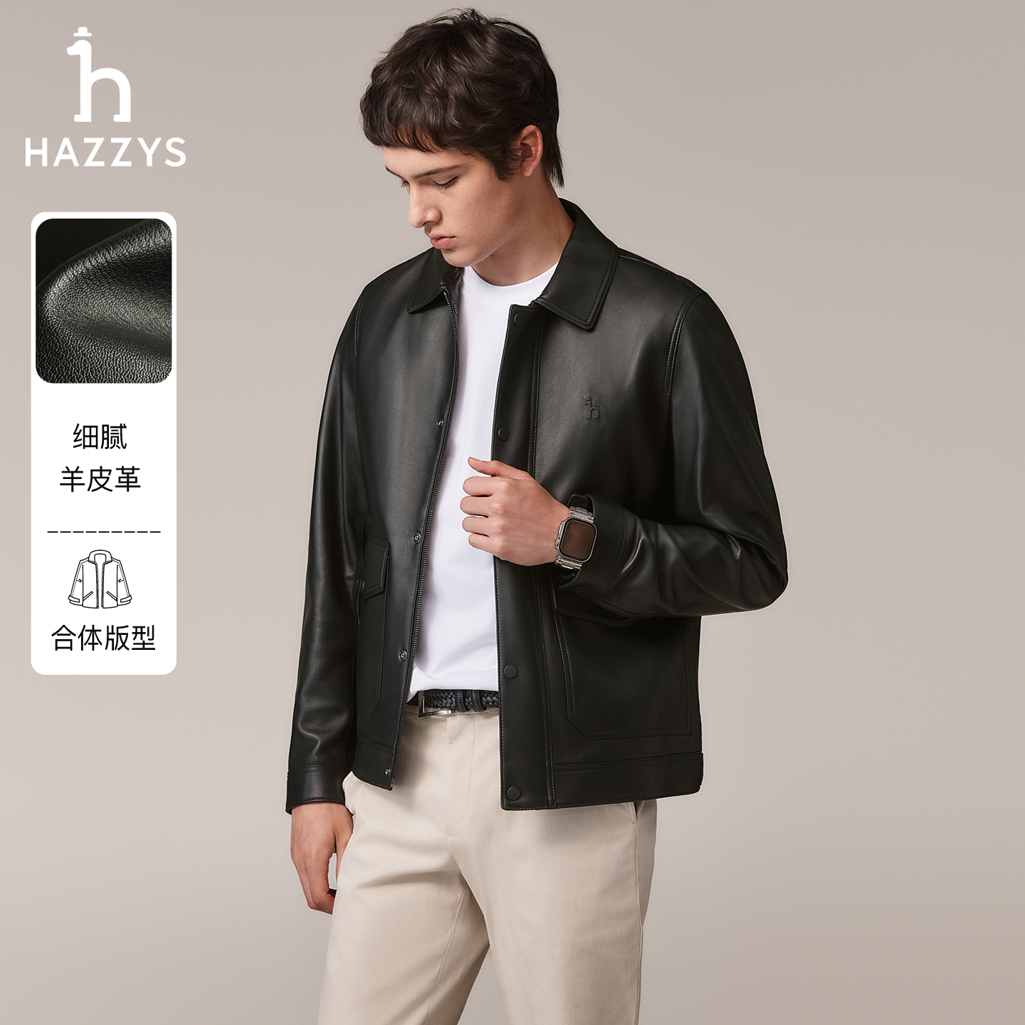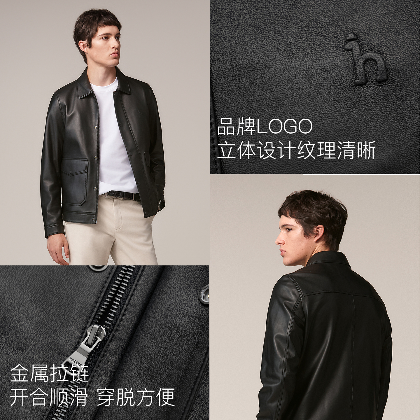 2025秋季 利郎官方真皮皮衣男士 商务翻领皮夹克外套男装 绵羊皮