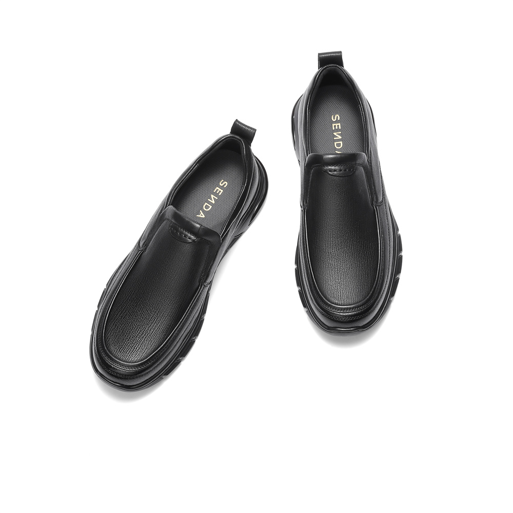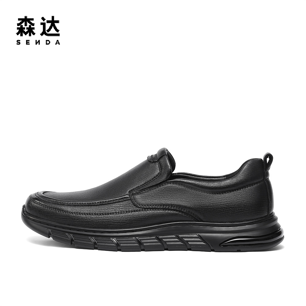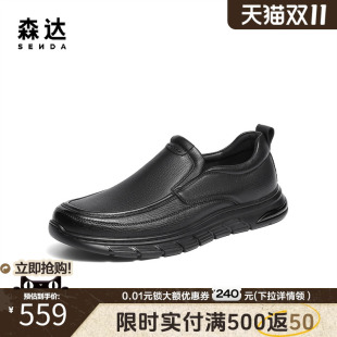 父亲中年爸爸鞋 男士 子软底一脚蹬 真皮商务休闲透气皮鞋 意尔康男鞋