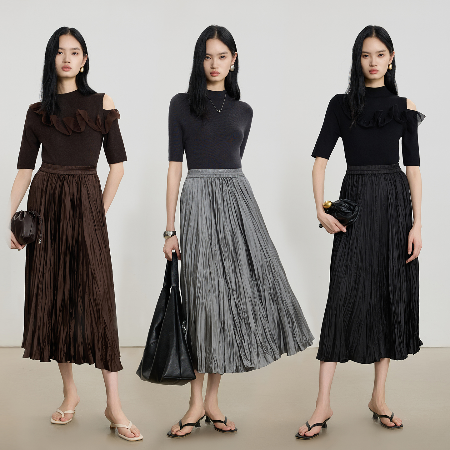 MOVEUP幻走复古半裙2025春秋松紧腰百褶裙休闲显瘦a字半身裙女夏