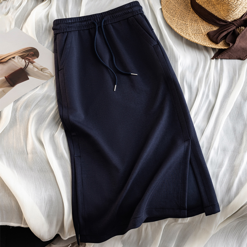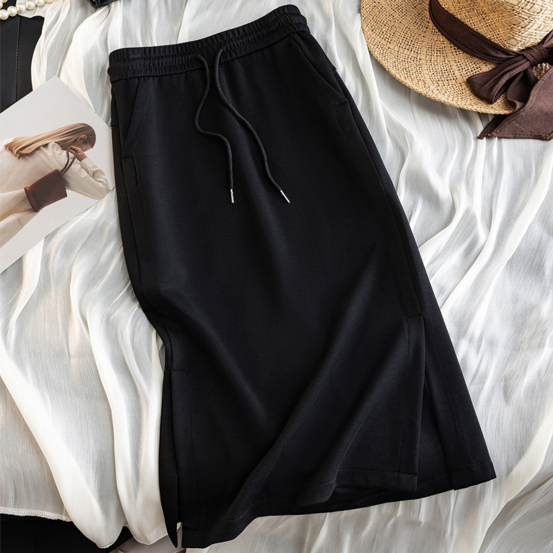 开叉包臀一步裙 高腰遮胯显瘦中长款 黑色毛呢半身裙女2025秋季 新款