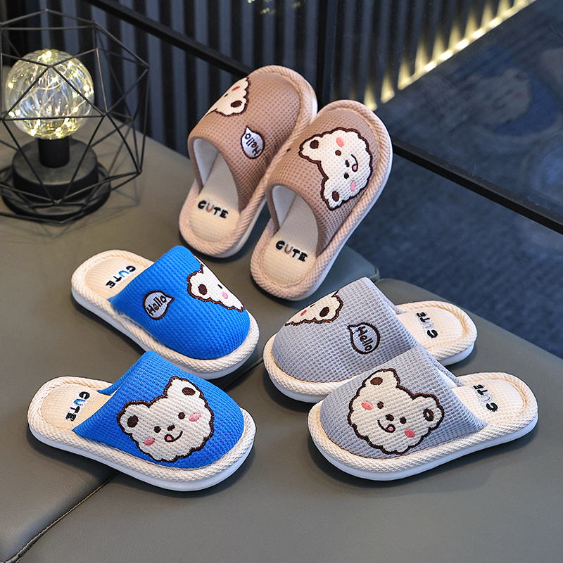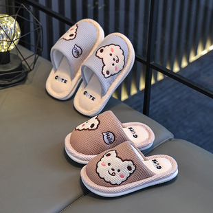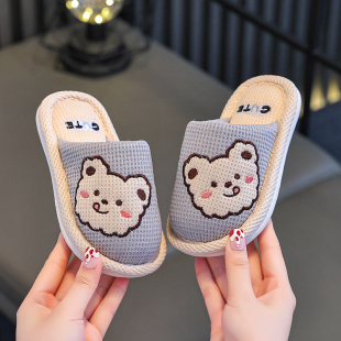 居家用室内防滑卡通亲子宝宝女亚麻布拖鞋 秋冬季 男童新款 儿童拖鞋