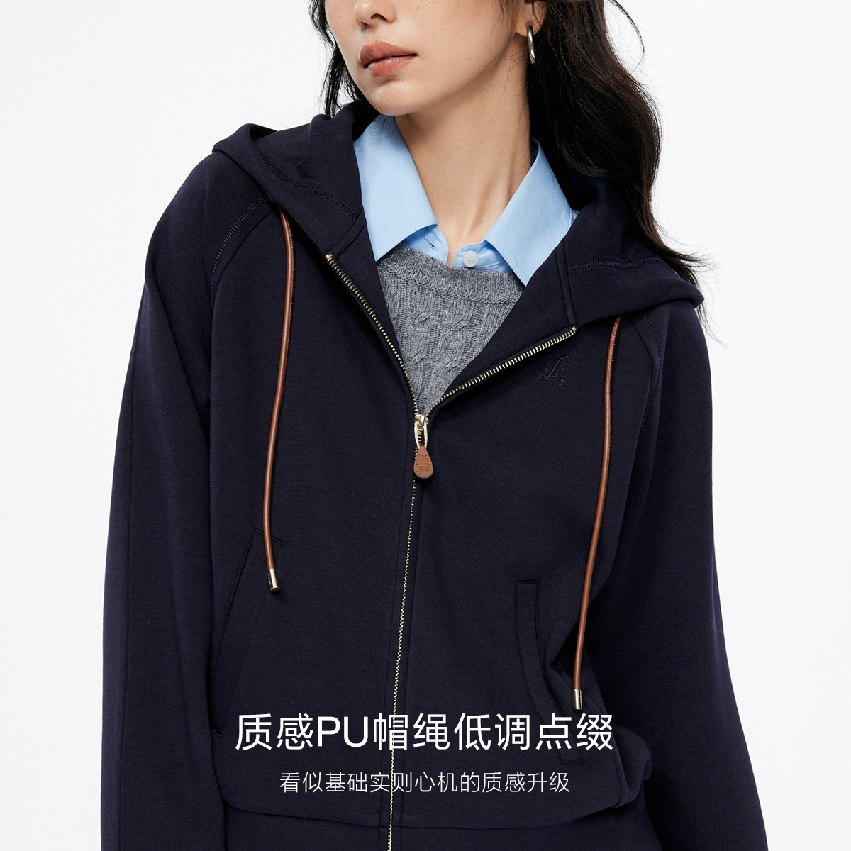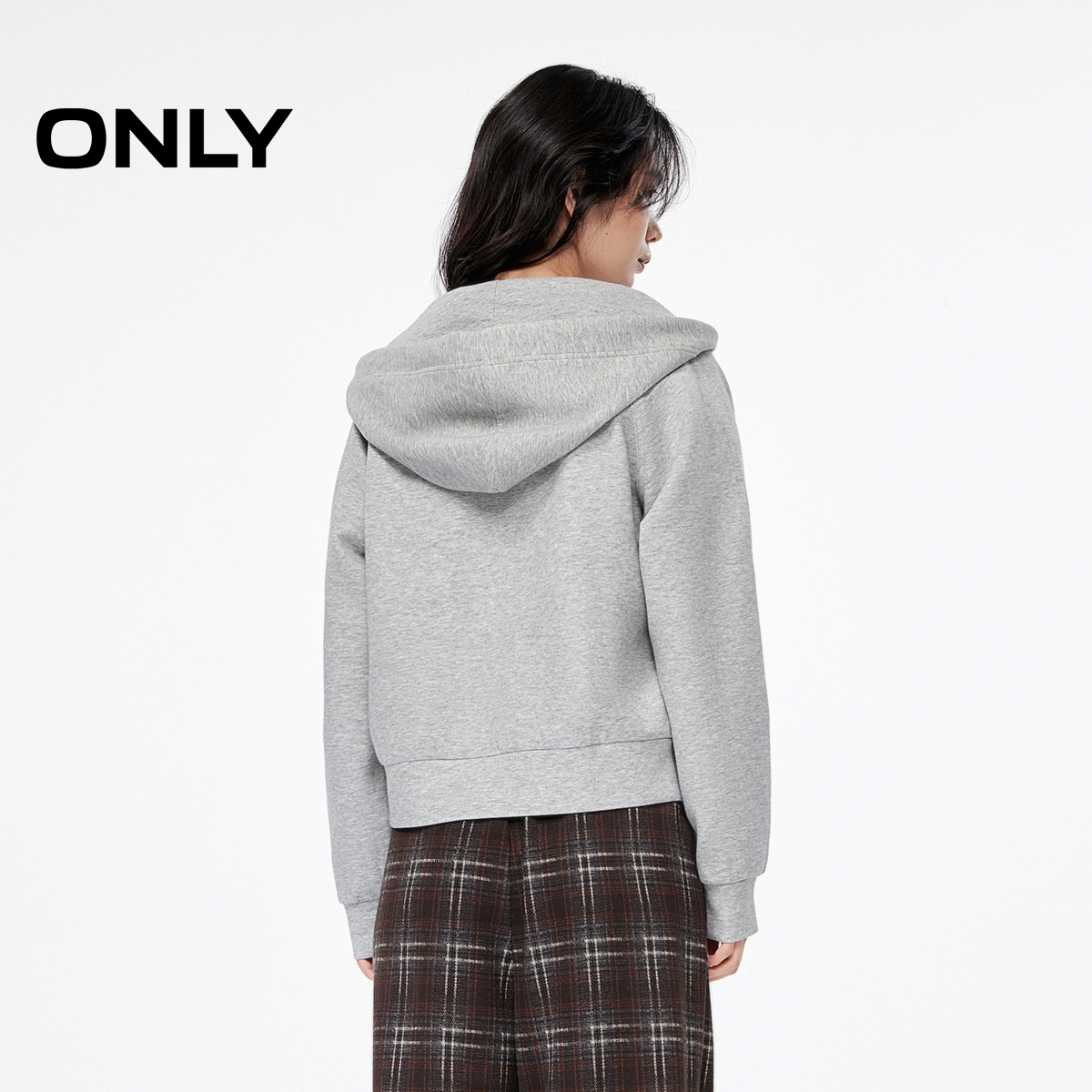 卫衣女 老钱风连帽宽松插肩双向拉链设计长袖 ONLY2025秋季 新款