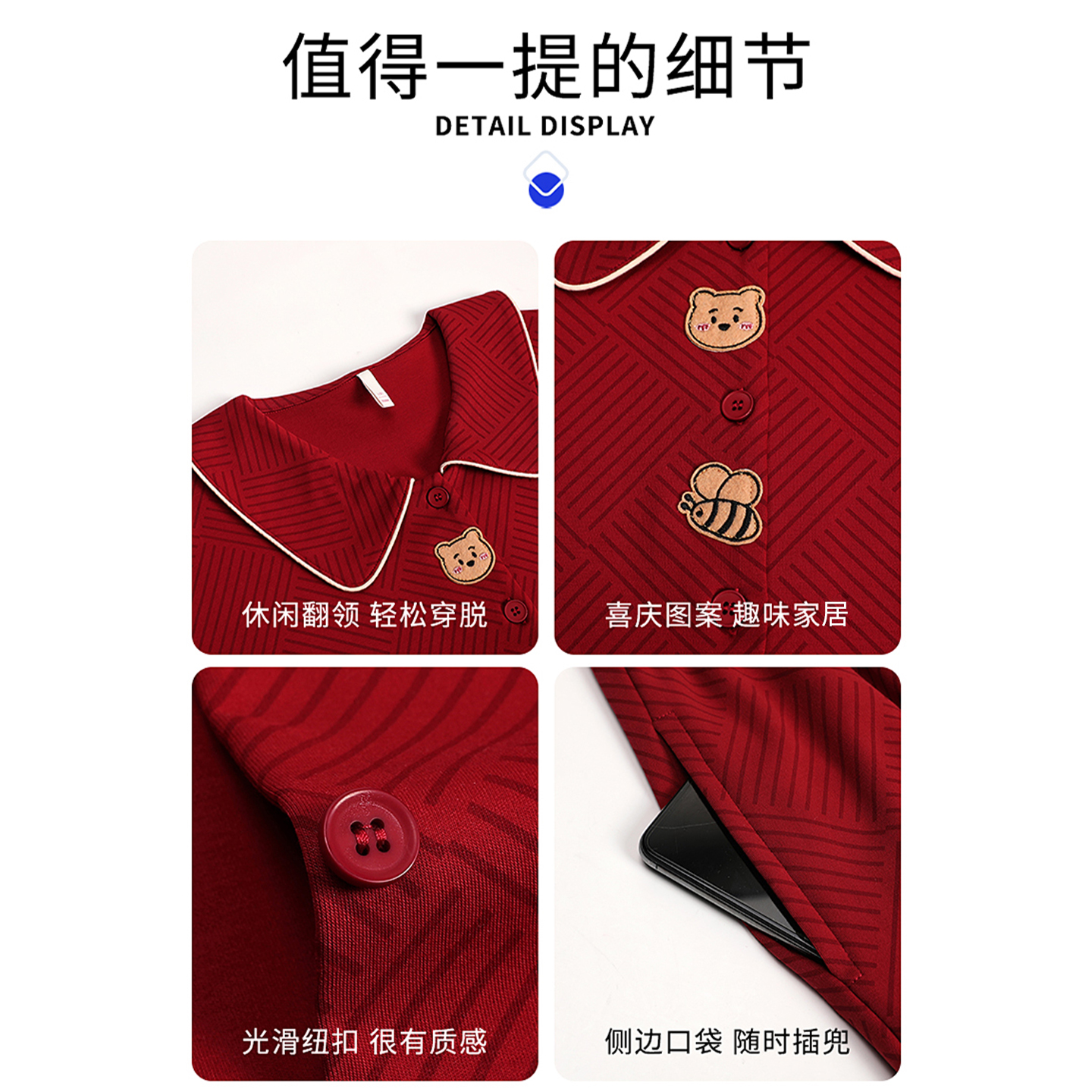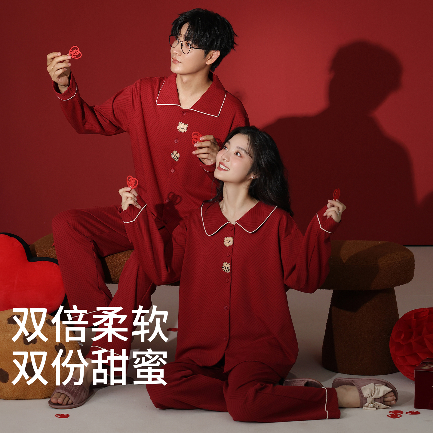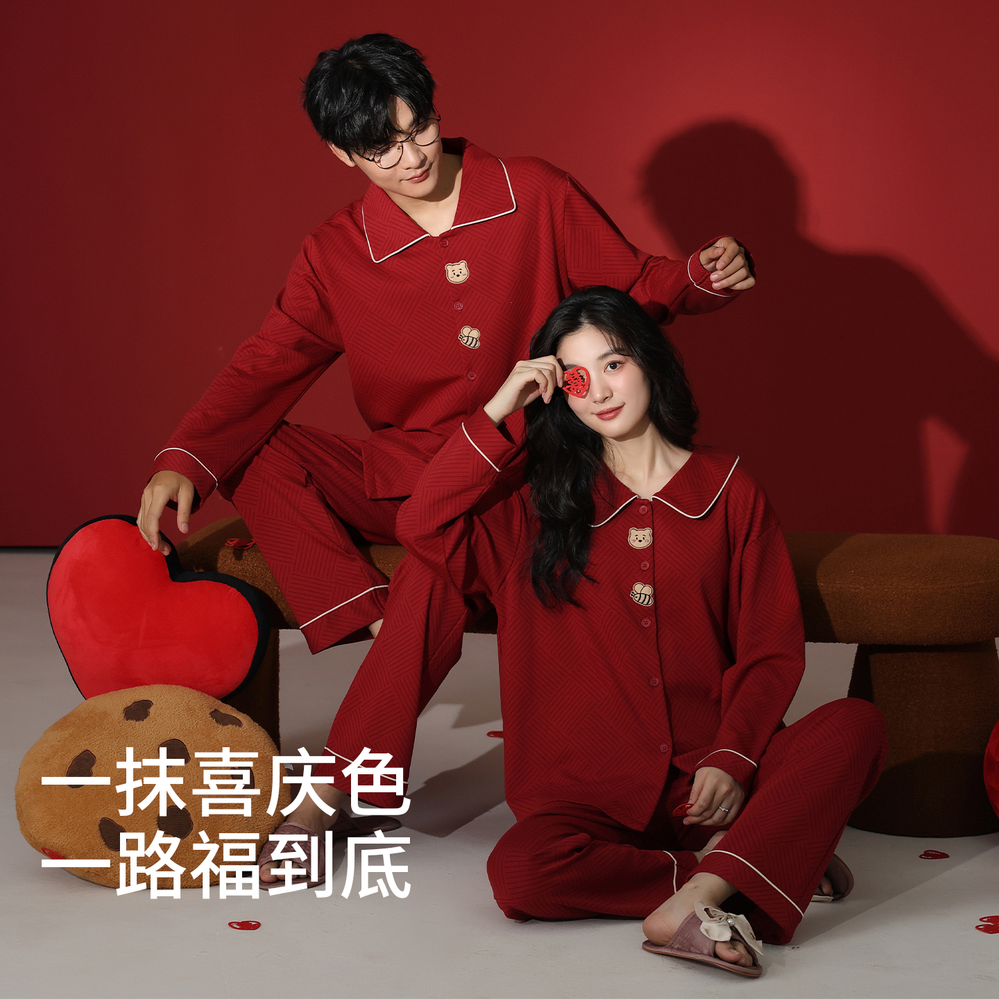 套装 长裤 家居服 红色本命年新婚情侣长袖 都市丽人睡衣女纯棉新款