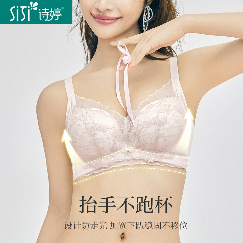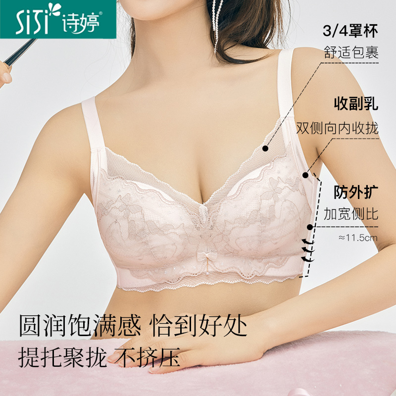 好奇蜜斯大胸显小胸内衣女性感夏薄防下垂法式 纯欲蕾丝文胸罩套装