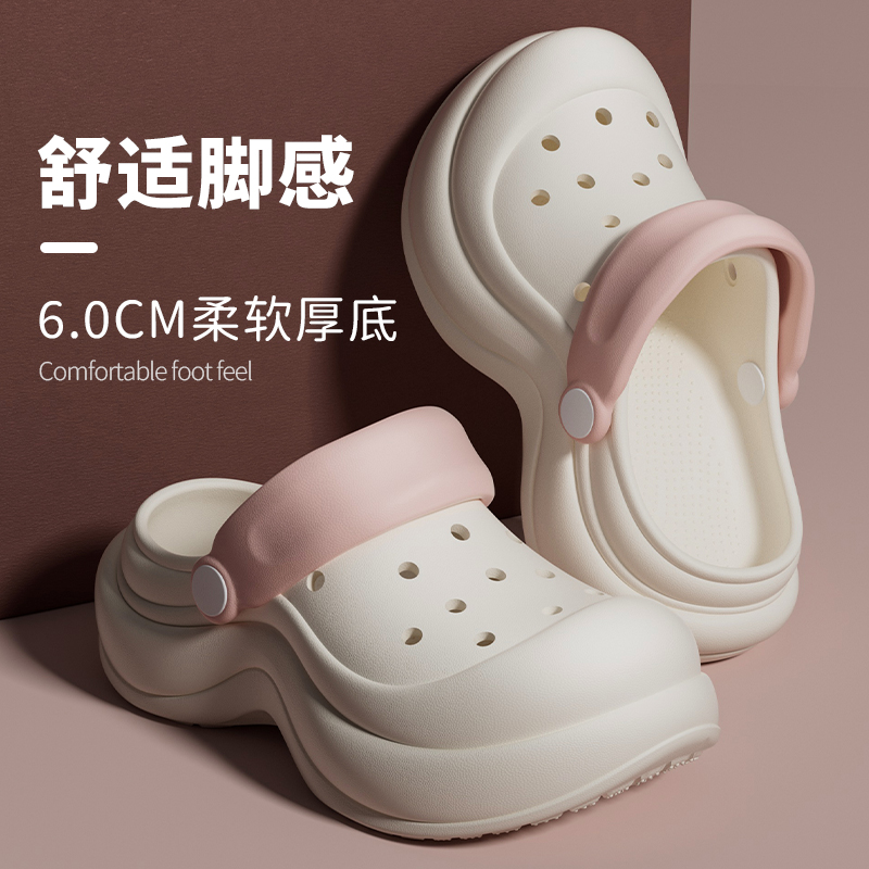 凉拖鞋 6.0cm厚底洞洞鞋 eva防滑防臭增高海边沙滩鞋 2025新款 女夏季