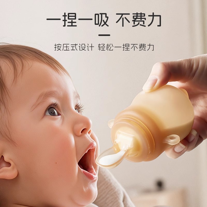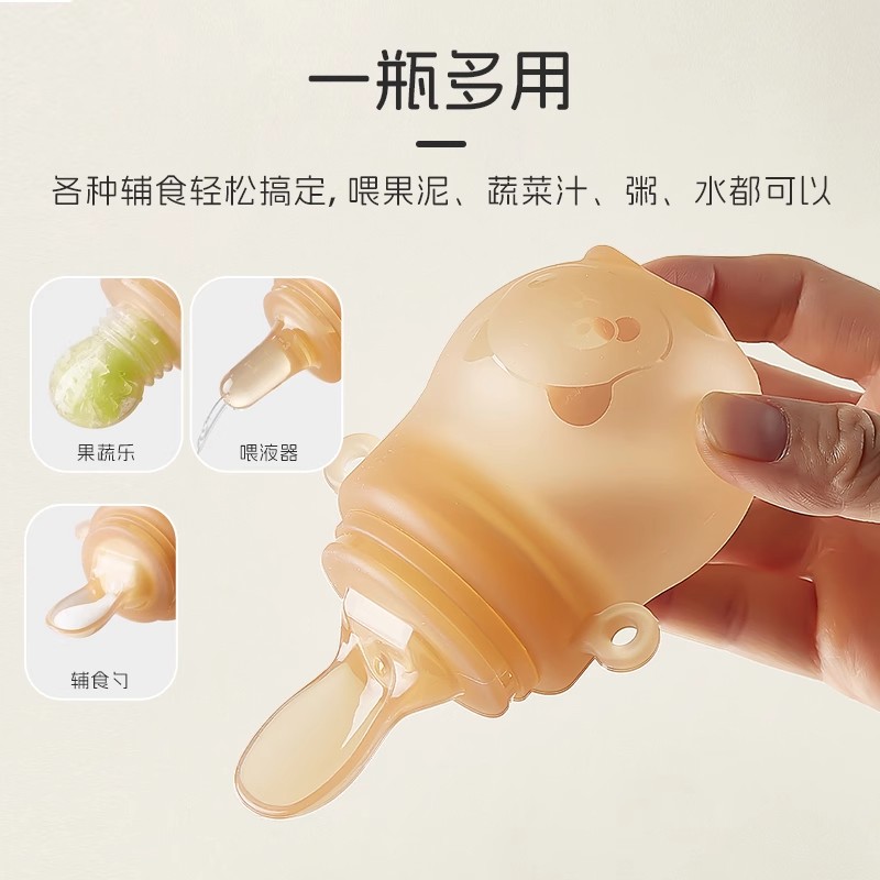 米糊勺辅食勺果蔬咬咬乐喂药器三合一宝宝硅胶挤压式 小奶瓶