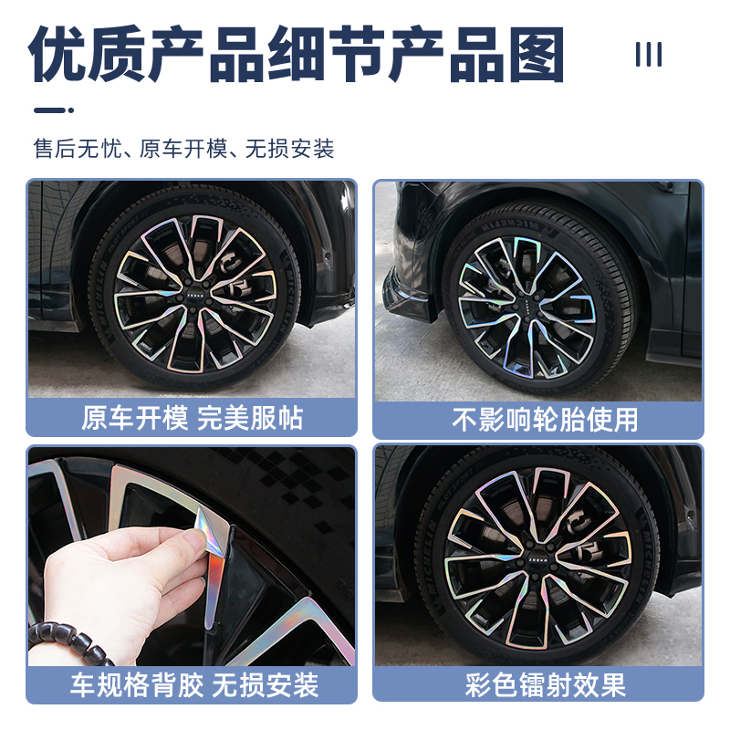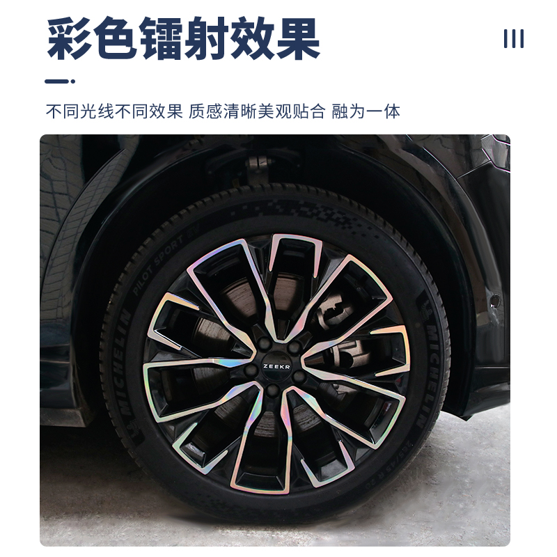 适用于极氪7x轮毂镭射贴纸改装 饰配件碳纤维车贴划痕修复专用色膜