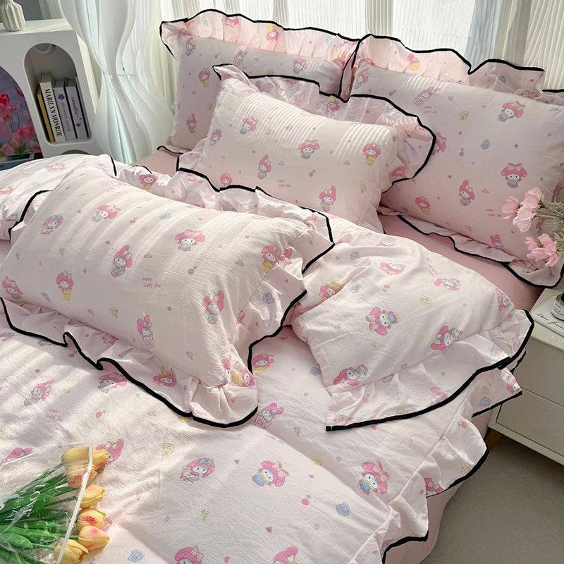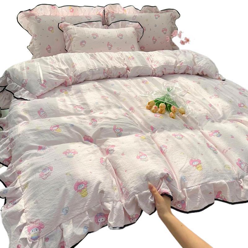 新款 秋冬加厚磨毛床单四件套家用labu女孩学生宿舍花边被套三件套