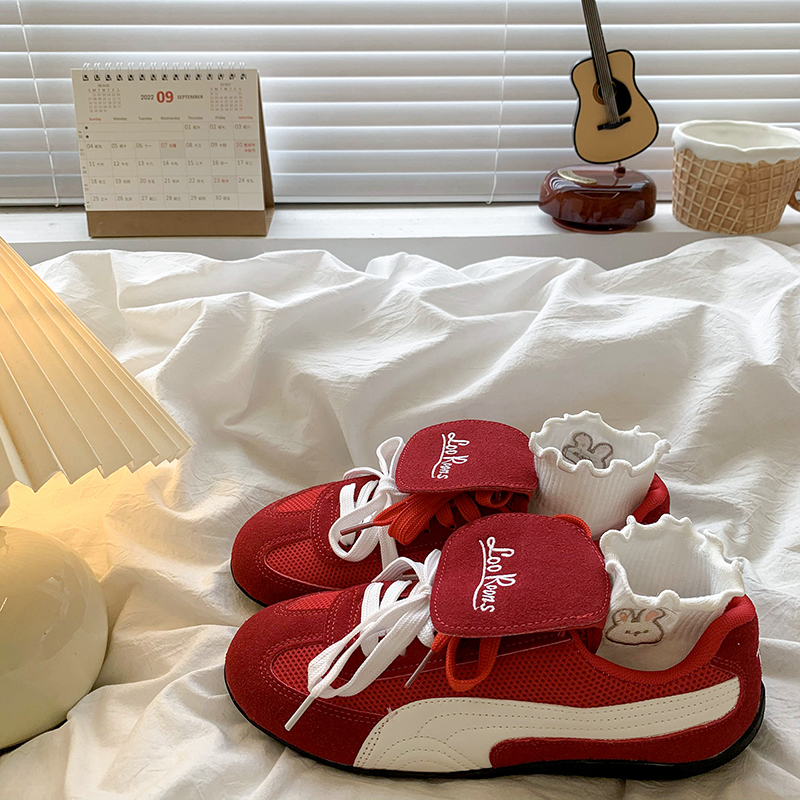 爆款 新款 红色板鞋 运动休闲鞋 热风麻薯德训鞋 薄底女鞋 2025年秋季