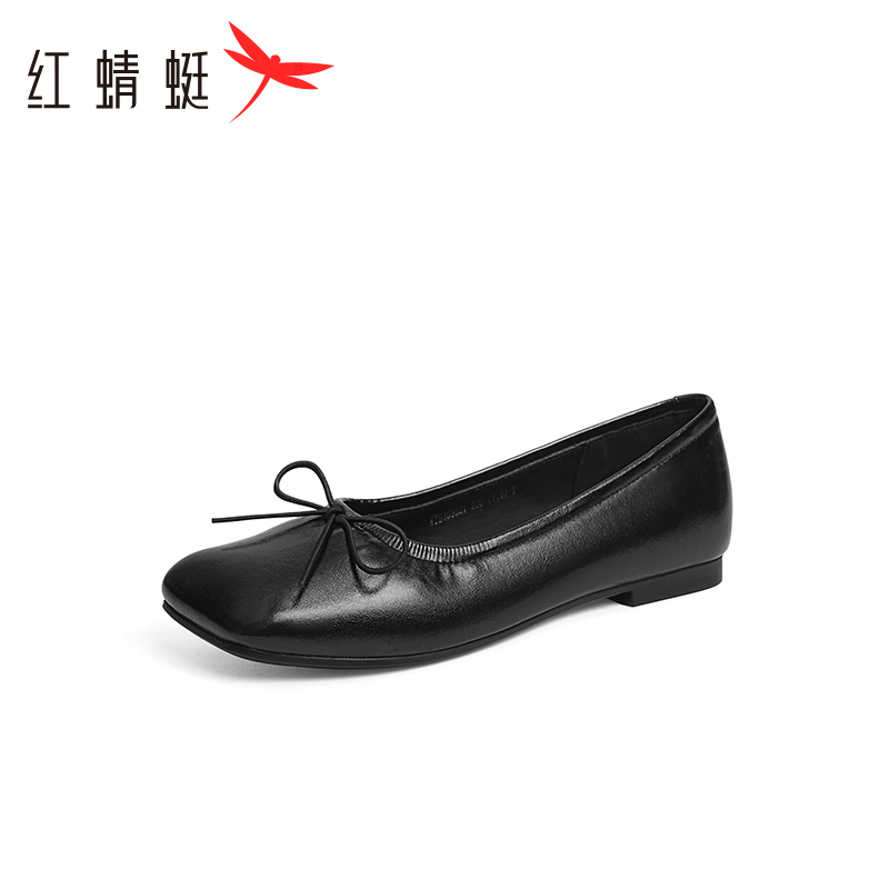 女2025新款 芭蕾红色小皮鞋 女鞋 法式 软底舒适平底鞋 红蜻蜓银色单鞋