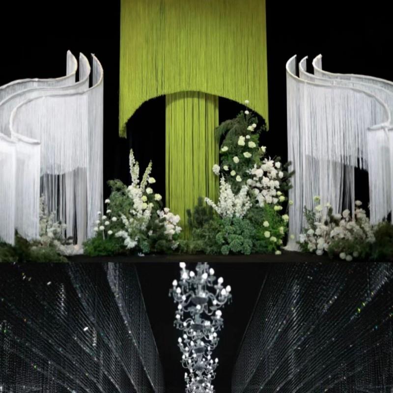 婚庆舞台加密门帘流帘挂帘婚礼背景摩天轮圆环吊顶装 饰线帘直线帘