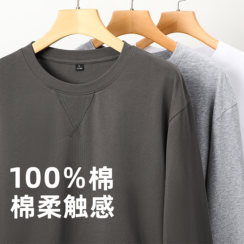 100%纯棉长袖 宽松遮肉显瘦套头外穿拼接薄卫衣B T恤上衣女秋冬韩版