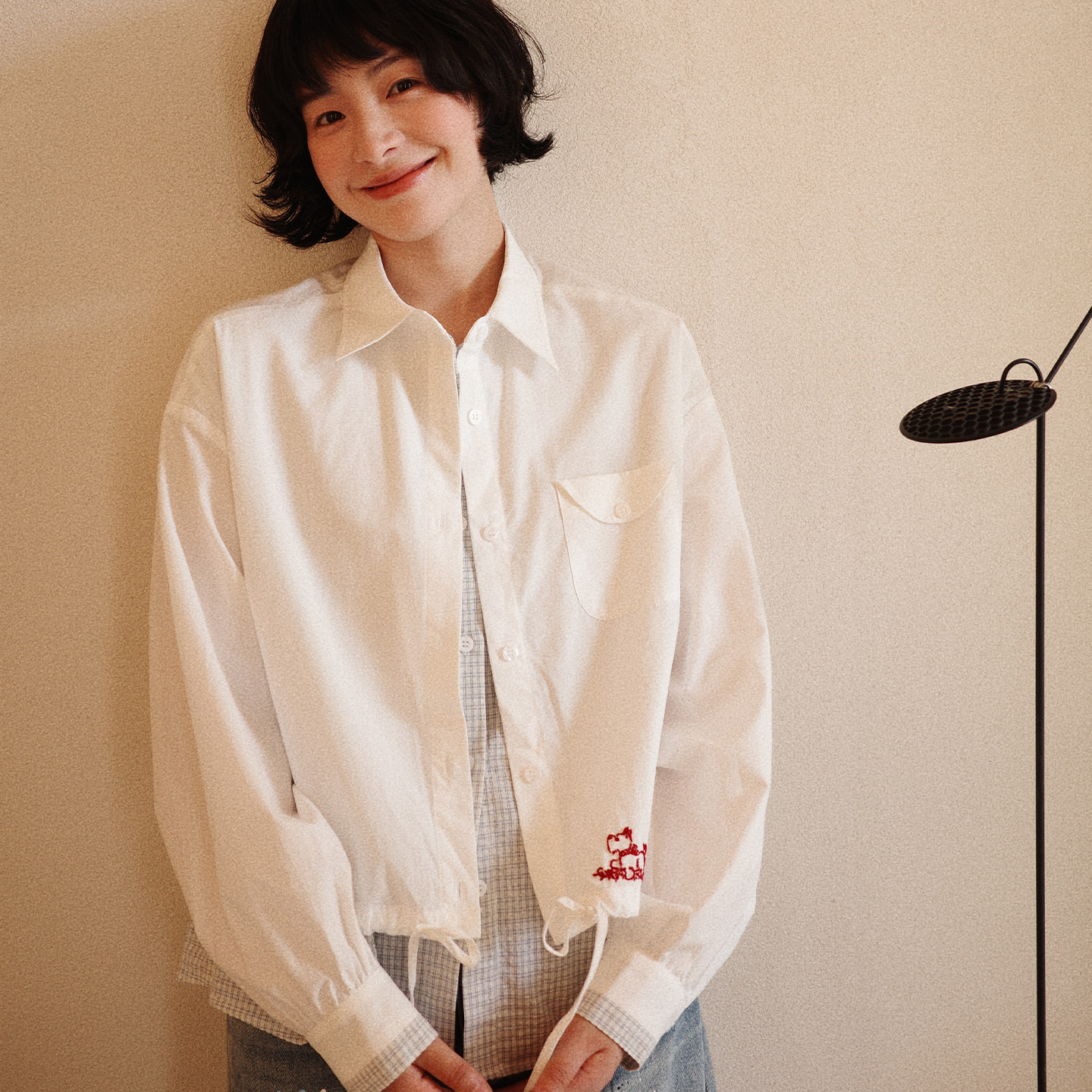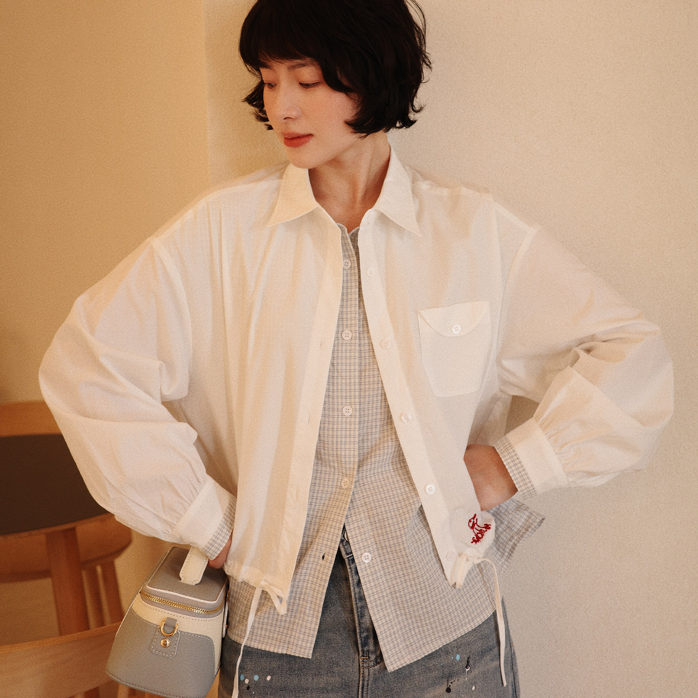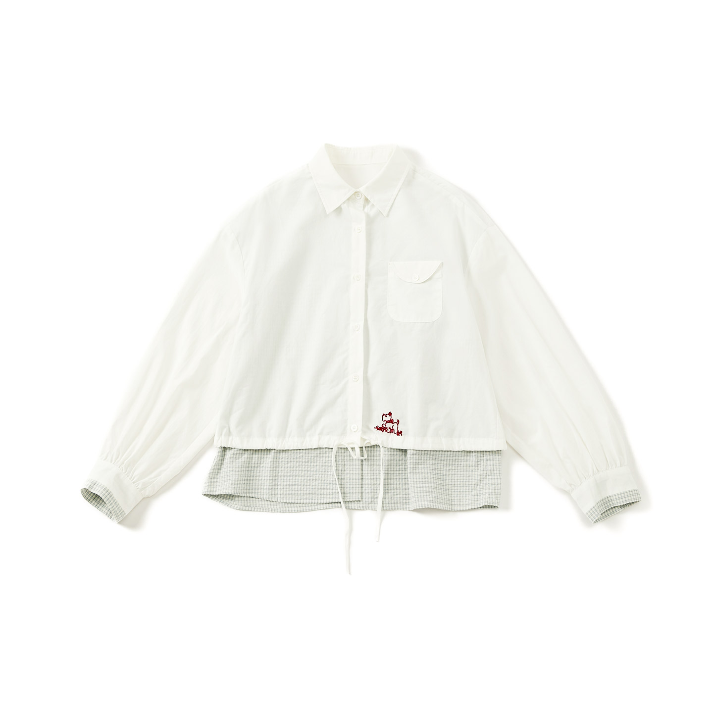 女刺绣气质衬衣通勤百搭上衣 格子拼接假两件衬衫 非鱼2025秋装 新款