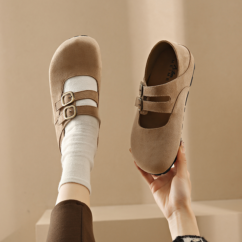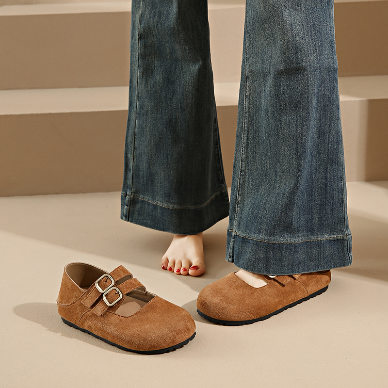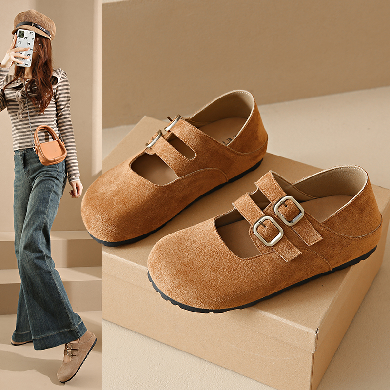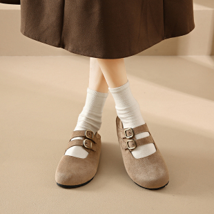夏秋透气休闲孕妇鞋 软底舒适玛丽珍鞋 浅口单鞋 真皮勃肯女2025新款