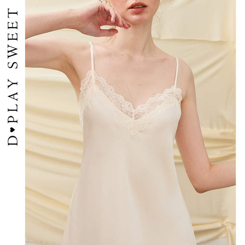 2025新款 性感冰丝睡袍纯欲风高级感蕾丝吊带睡衣 睡裙女春秋夏薄款
