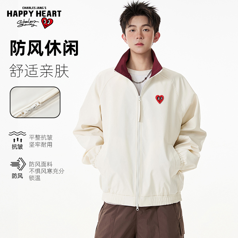 立领情侣外套 撞色拼接简约夹克男女2025年春秋季 查尔斯桃心 美式