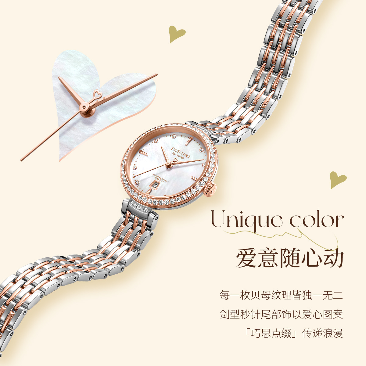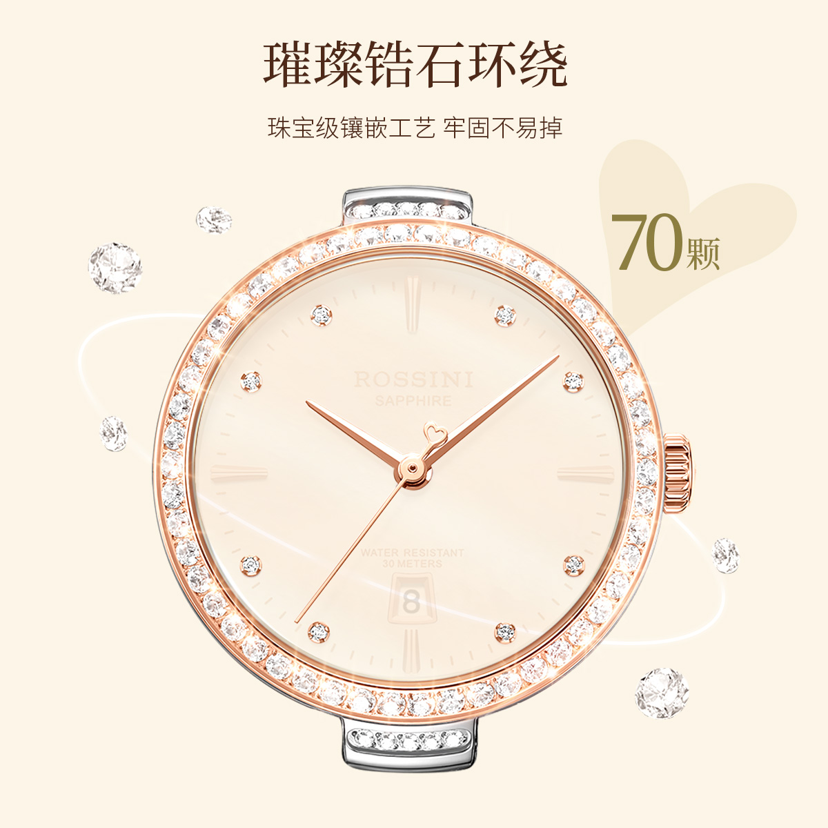 罗西尼手表女气质轻奢贝母盘精致锆石镶嵌女士石英手表5240228