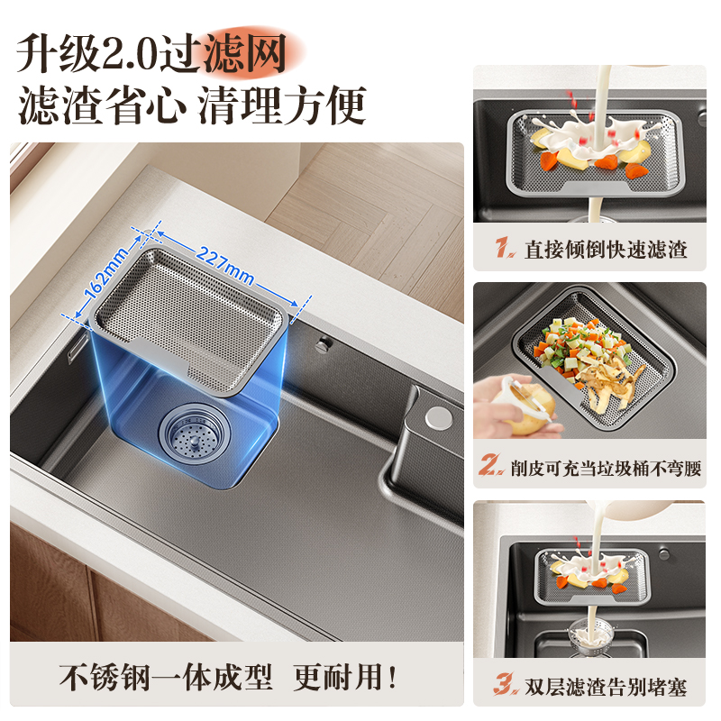 箭牌日式 大单槽洗菜盆纳米厨房水槽水池家用304不锈钢侧排台下盆