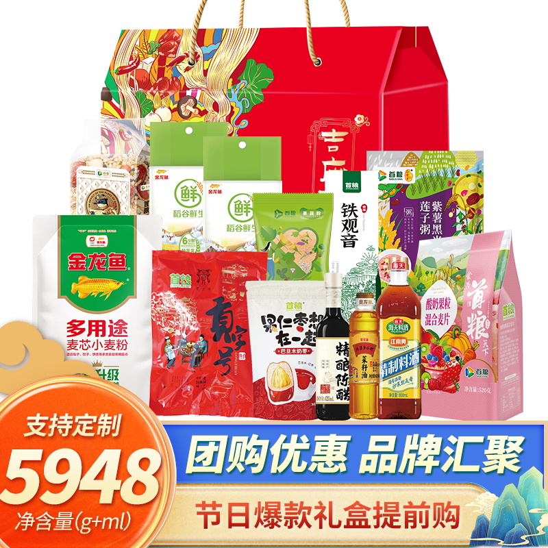 首粮金龙鱼杂粮大礼包五谷粗粮礼盒福利米面油组合大礼包