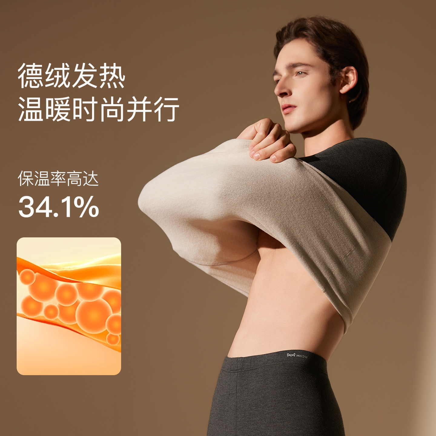 德绒羊绒发热防寒冬季 雅鹿保暖内衣男士 男款 套装 加绒加厚秋衣秋裤